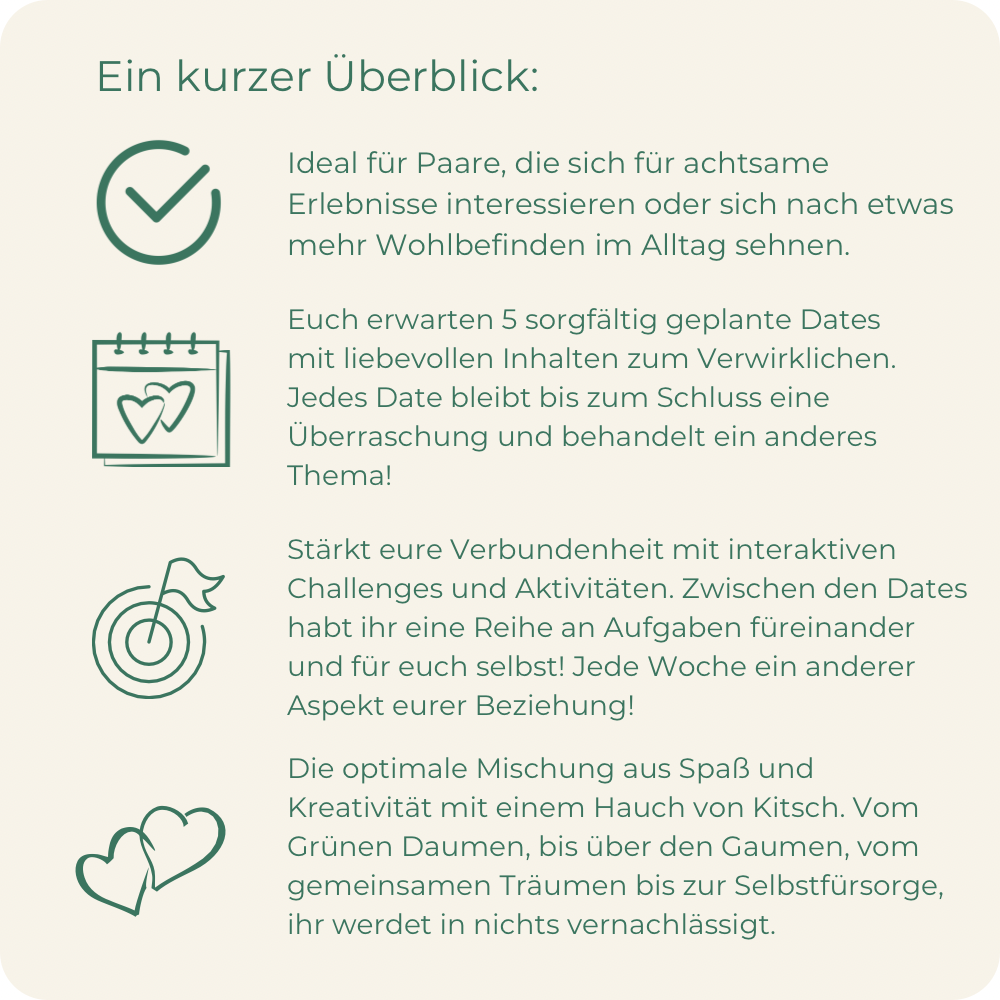 In diesem Bundle gibt es 5 geplante Dates mit liebevollen Extras um diese zu verwirklichen